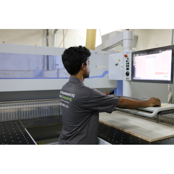 As mentioned above, Haus utilizes German machinery. It ensures precision to the nearest measurement for every cutting and drilling process. Closetdesign ' German machinery is also used to do edging, ensuring that every single Haus product is in tip top condition, of the same quality each and every single time