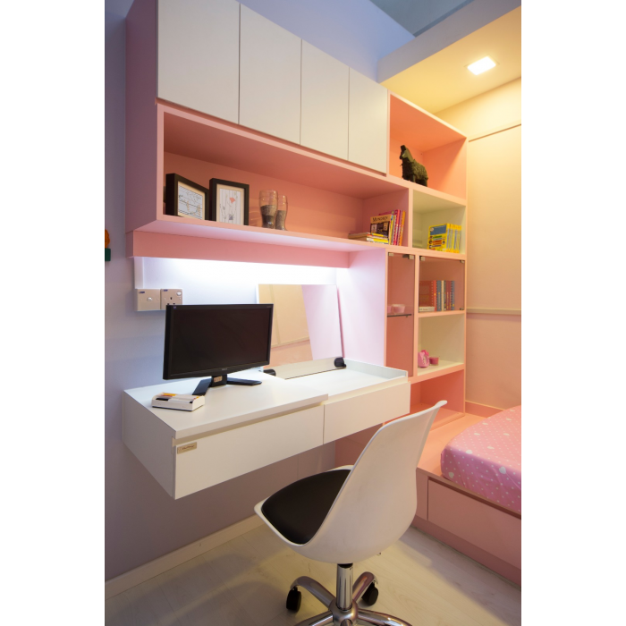 An area for your little one to read or study, a study table is essential for your little one in his or her growing years. With power sockets and bright lights, this is an ideal study table for any studious kid. The drawers also allow for storage for important books and stationery. Too many books but not enough storage? No problem! The study table has plenty of room to display your favorite books and not so favorite assessment books. With a customizable design, you can design any table for your needs. This study table, however, is no ordinary table, it has a flip-up mirror that can instantly transform your study table into a vanity.